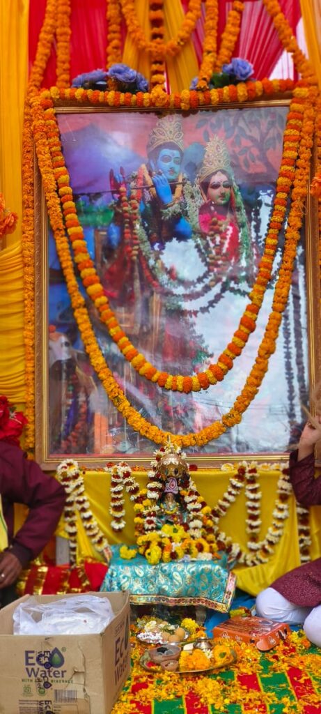 पटना सिटी। पटना के ऐतिहासिक गायघाट क्षेत्र में स्थित पौराणिक संकट मोचन हनुमान मंदिर, दुर्गास्थान करनालगंज में गुरुवार को एक भव्य और दिव्य आयोजन देखने को मिला। यहां श्री राधाकृष्ण जी की प्रतिमा के आठवें स्थापना दिवस के उपलक्ष्य में मंदिर परिसर से एक शानदार शोभायात्रा निकाली गई।
