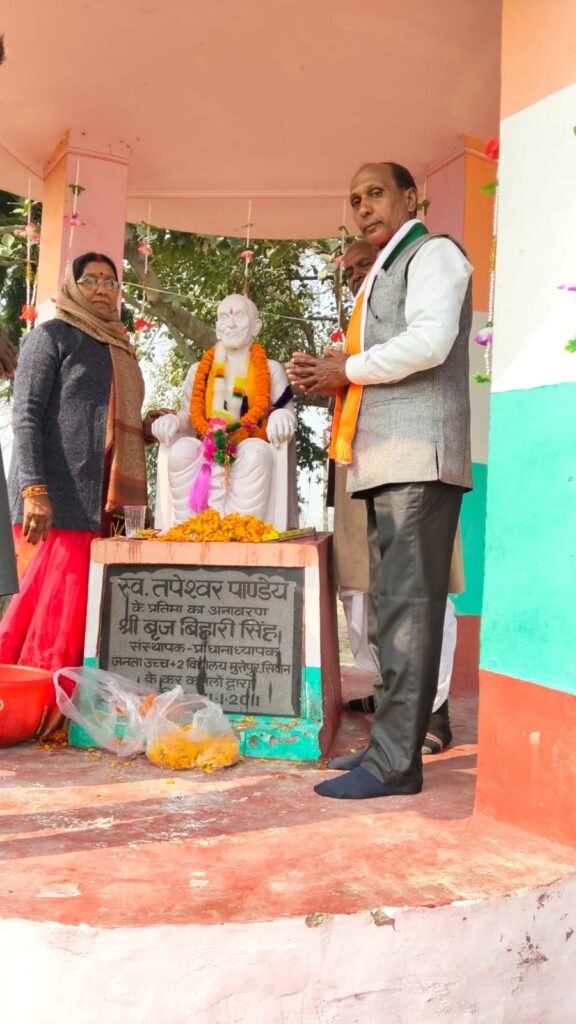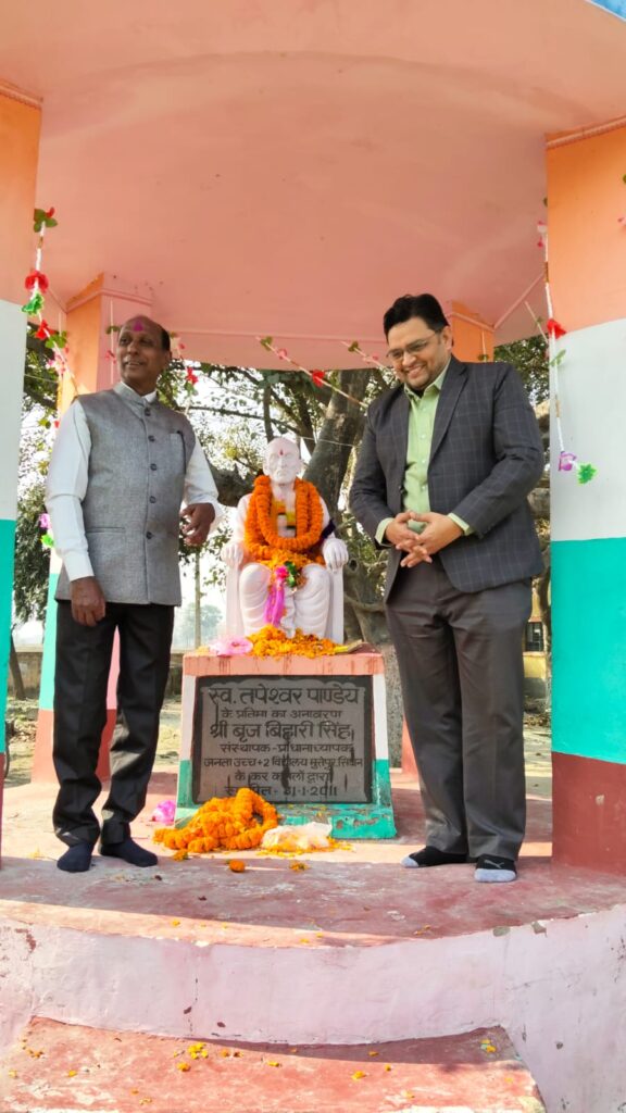 यह कार्यक्रम डॉ. तपेश्वर पाण्डेय शिक्षा एवं स्वास्थ्य सेवा संस्थान के तत्वावधान में विद्यालय परिसर में आयोजित हुआ। कार्यक्रम की शुरुआत विद्यालय परिसर में स्थापित स्व. डॉ. तपेश्वर पाण्डेय जी की आदमकद प्रतिमा पर माल्यार्पण से हुई। माननीय विधायक देवेशकांत सिंह जी ने मुख्य अतिथि के रूप में प्रतिमा पर माल्यार्पण किया। साथ ही स्थानीय ग्रामीण, सामाजिक कार्यकर्ता, शिक्षक और प्रेमीजन भी श्रद्धांजलि अर्पित करने पहुंचे।